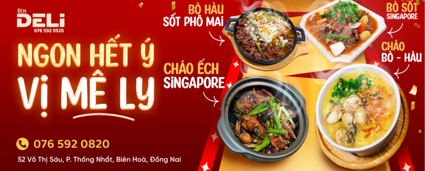 Kính gửi Quý Khách hàng, Deli xin chân thành gửi lời cảm ơn sâu sắc đến Quý Khách đã luôn tin tưởng, ủng hộ và lựa chọn các món lẩu ếch – cháo ếch của chúng tôi trong suốt thời gian qua. Sự đồng hành của Quý Khách chính là động lực lớn nhất để Deli không ngừng hoàn thiện chất lượng món ăn, dịch vụ và mang đến những trải nghiệm ngày càng tốt hơn. Chúng tôi trân trọng từng tình cảm mà Quý Khách dành cho Deli và hy vọng sẽ tiếp tục được phục vụ Quý Khách trong thời gian tới với nhiều hương vị mới, chất lượng hơn, chu đáo hơn. Kính chúc Quý Khách nhiều sức khỏe, hạnh phúc và thật nhiều bữa ăn ngon bên gia đình, bạn bè tại Deli. Trân trọng, Deli – Lẩu Ếch & Cháo Ếch